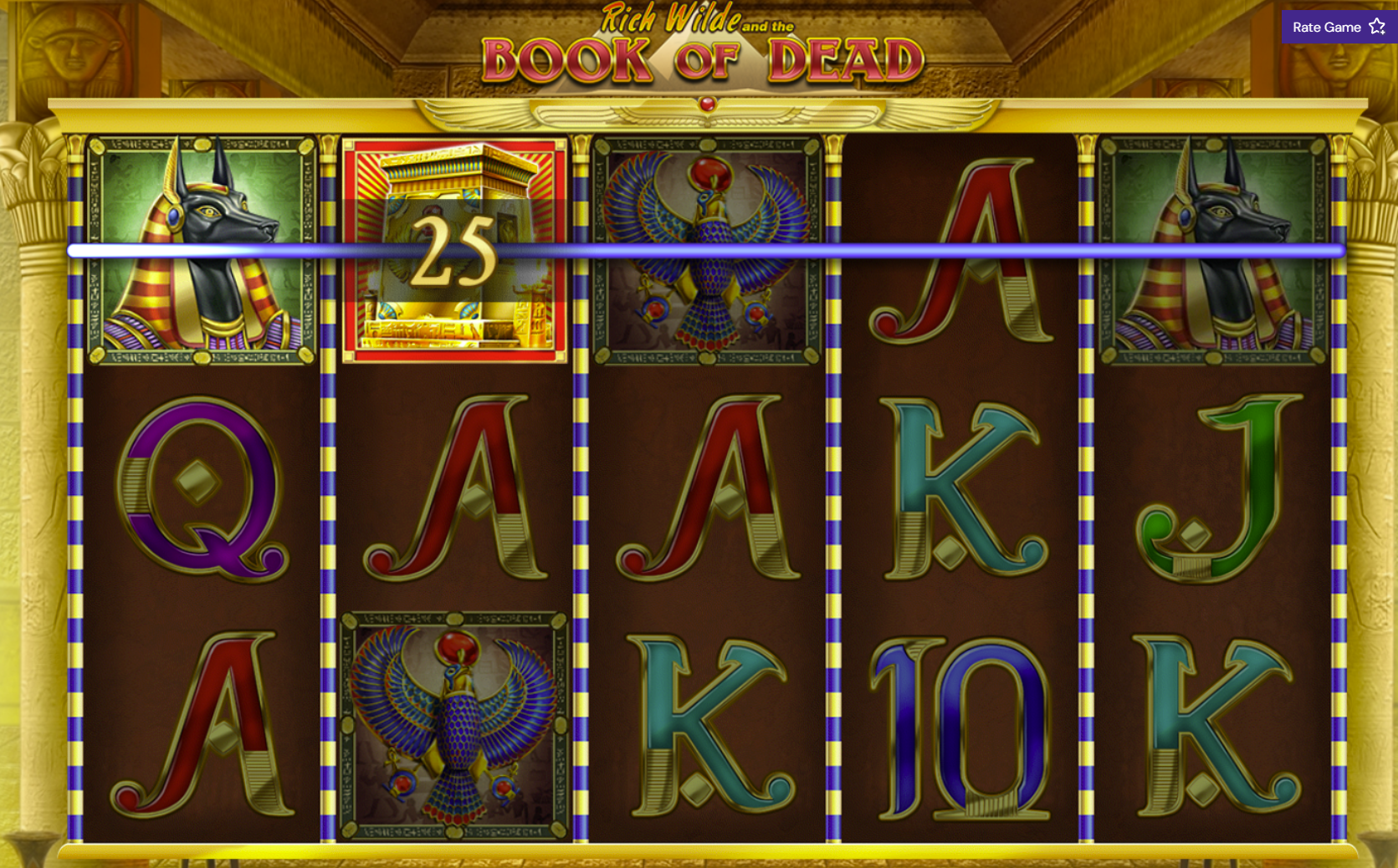 Rich Wilde (the explorer) is the highest paying symbol. If he's chosen as the expanding symbol during free spins, he can create wins worth up to 5,000x your stake.