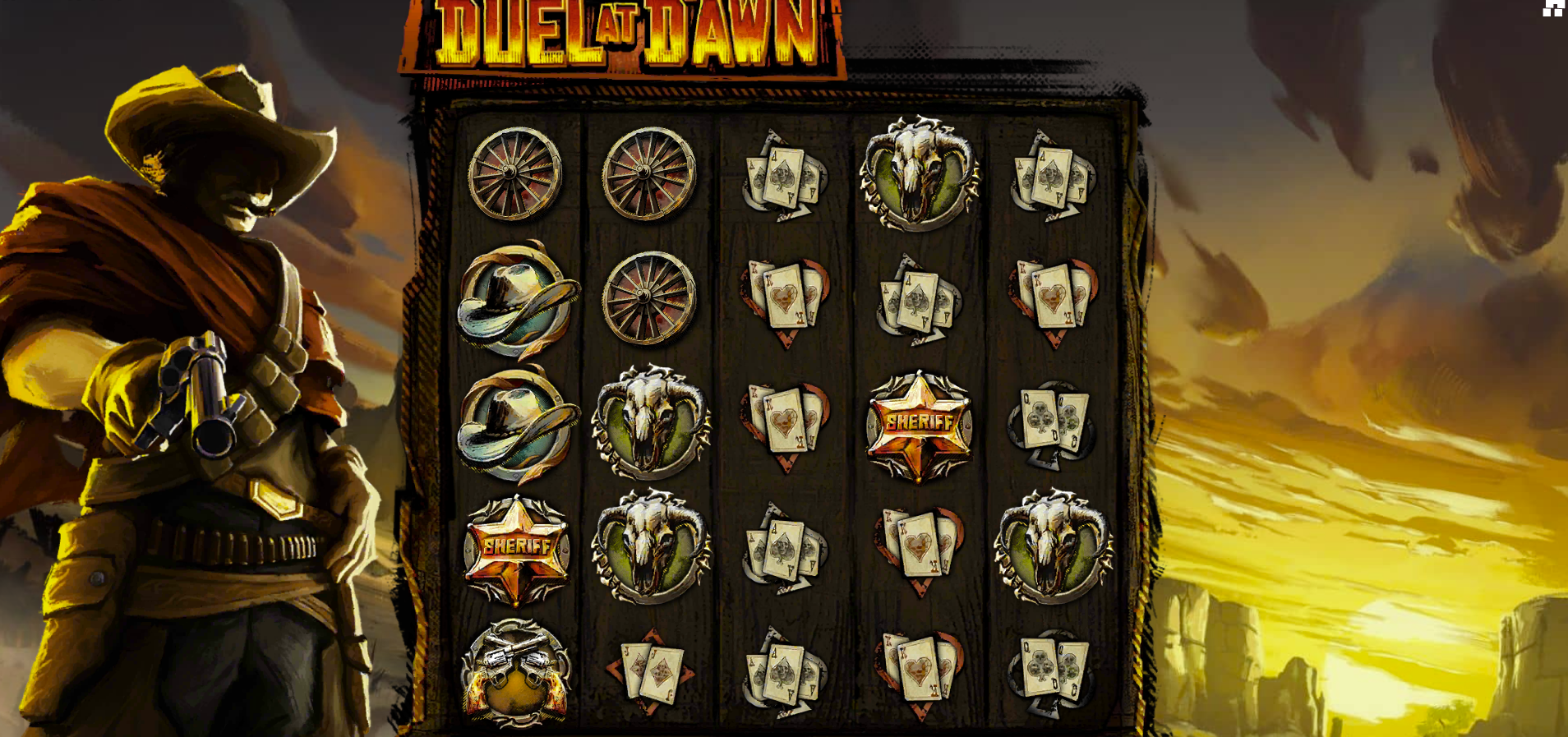 - Duel Positioning System: Two gunfighter characters stand on either side of the reels. Their positions change with each spin, determining where wild symbols will be placed on the grid.